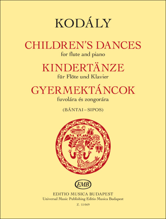 Vilmos Bántai and Éva Bántai-Sipos selected eight of the Children's Dances to transcribe for flute and piano. In these transcriptions, recommended for music school students, the original e flat-g flat-a flat-b flat-d flat range is always transposed to easier-to-read keys. In the case of two pieces, two different transpositions (one being very easy to play and the other more difficult) are even offered. The flute is undoubtedly featured as a melodic instrument in these pieces, while the piano sometimes plays a supporting role and other times shares equal status with the flute.