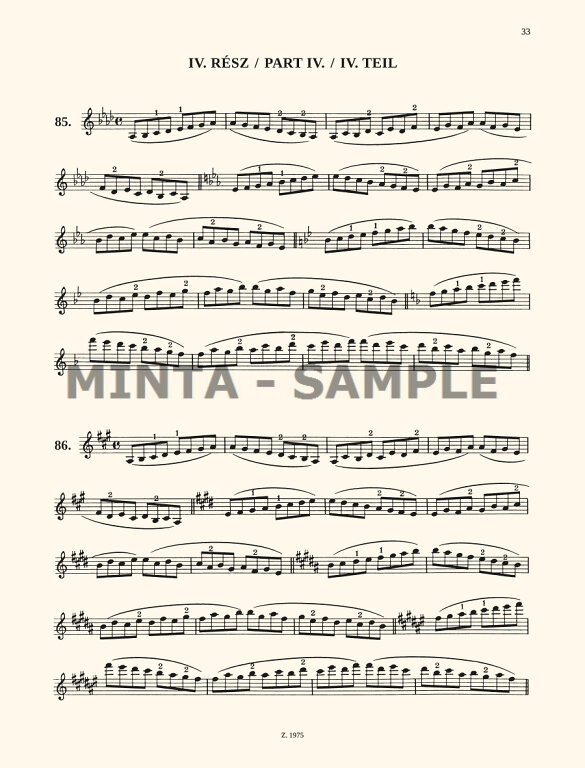 This is a revised edition of the scale studies published in 1948. It contains the major and minor scales used during violin teaching at elementary level as well as broken triads and seventh chords. Its mission is to gradually prepare the player for the volume ''Das Skalensystem" by Carl Flesch, used in advanced level teaching.It depends on the needs of the student whether to make use of the fingering suggested in the music or a different one: the same musical patterns can be realized in many different ways. Similarly, bowing, rhythmic patterns, and dynamic levels may be altered according to taste.As far as progressions in thirds, sixths, octaves, and tenths are concerned, due to lack of space only samples are given here. Based on these, transposed versions may be elaborated individually.