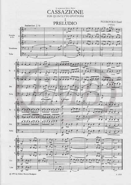Petrovics Emil: Cassazione per quintetto d'ottoni