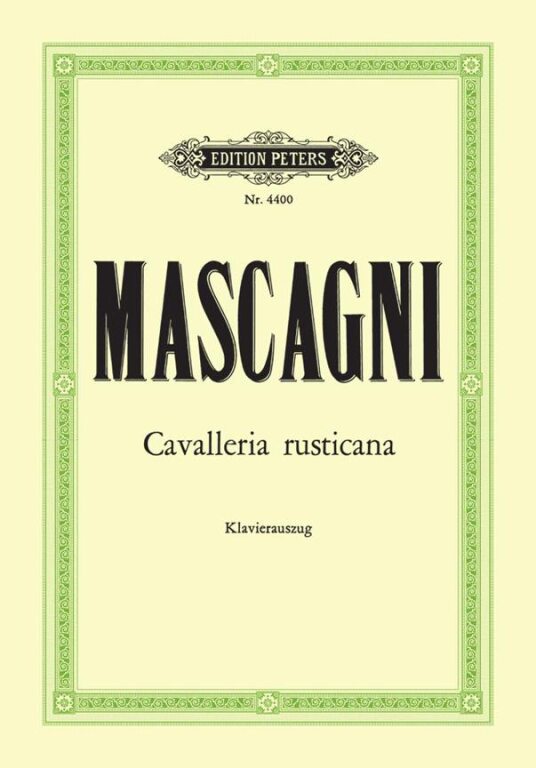 Vocal score for ,Pietro Mascagni's Cavalleria Rusticana ,arranged for Voice and Piano accompaniment.