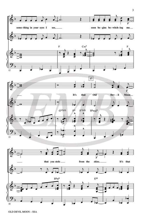 This popular standard from Finian's Rainbow really swings, making it a great showcase for SSA groups of all ages! Duration: ca. 3:00.