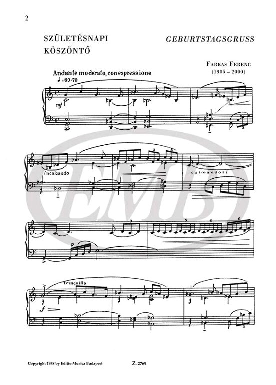 Editeur: Universal Music Publishing Editio Musica Budapest