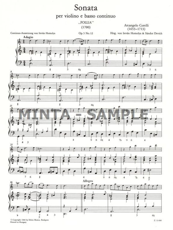 Corelli, Arcangelo: Sonata per violino e basso continuo