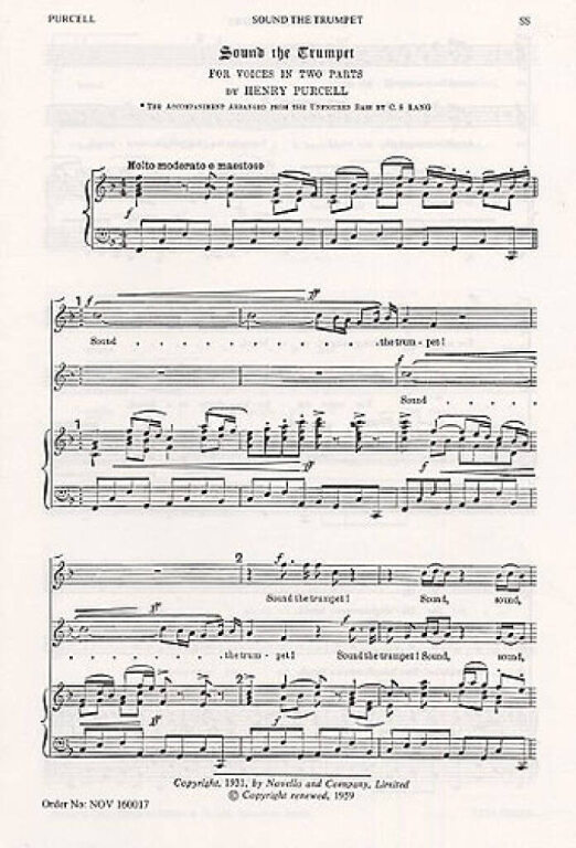 Sound The Trumpet arranged for soprano voices in two parts by Henry Purcell.