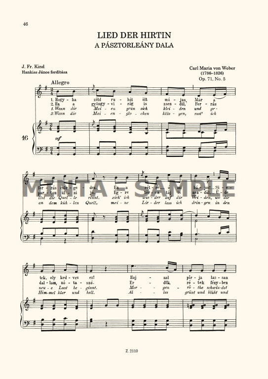 | 16. | Weber, Carl Maria von – Hankiss János – Kind, J. Fr.: Lied der Hirtin | |