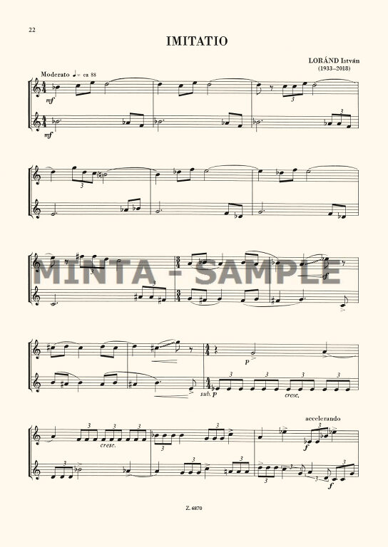 Our publication features trumpet duos that introduce players to the world of chamber music through works by the great masters of music history (Haydn, Mozart, Schumann) as well as by prominent 20th-century Hungarian composers (Hidas, Szokolay, and others). The fifteen selected pieces, representing a variety of styles, are suitable not only for pedagogical purposes - recommended for intermediate and advanced players - but also for concert performance.