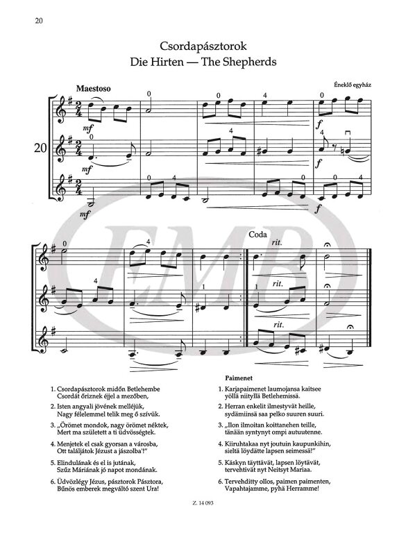 The volume contains the arrangement of Hungarian folksongs ot the Christmas time for beginners of the violin and appears as the counterpart of the volume for two recorders or two guitars (Z. 14089).